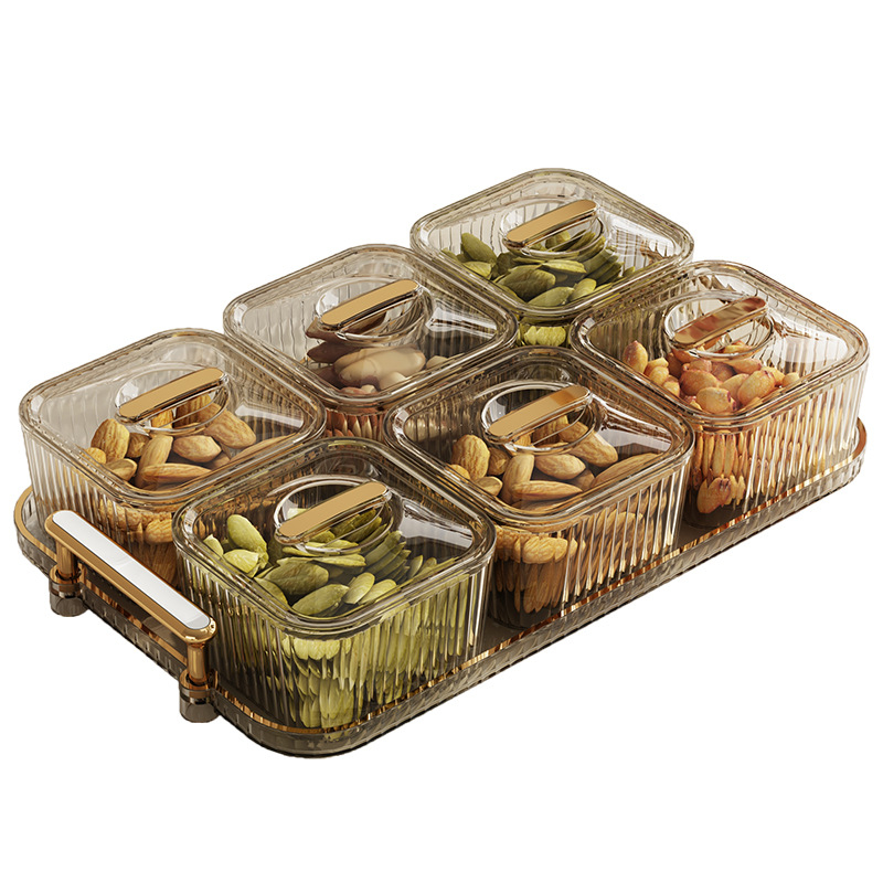 Protective Lid with Gold Handle:The tray is equipped with a protective lid, featuring an elegant gold handle. This ensures that your snacks and dried fruits stay fresh and are securely covered while adding a touch of luxury to the design.